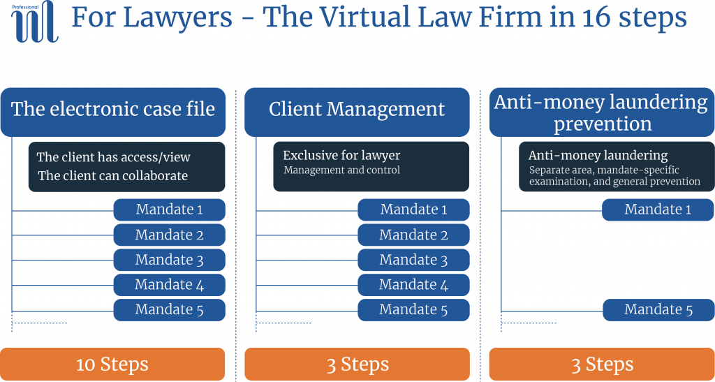 Die elektronischen Akte besteht aus einem Muster für die Mandatsstruktur und einem Muster für die Mandatsdokumentation. Die Titel dieser beiden Bausteine in unserer Vorlagenbibliothek sind Rechtsanwalt 001 – Mandatsakte und Rechtsanwalt 002 – Mandatsdokumentation. Beide Muster kannst Du in deinem Projektraum für deine Virtuelle Kanzlei hochladen und zusammenfügen. Unser Bauplan erklärt dir, wie das geht (E-Mail an support@worklean.com, dann bekommst Du ihn).